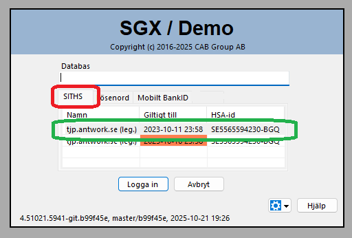 O.B.S! Att om det dyker upp ett rödfärgat datum (som nedan), mellan ditt namn och HSA-ID, så tyder det på att certifikatet är på väg att gå ut.