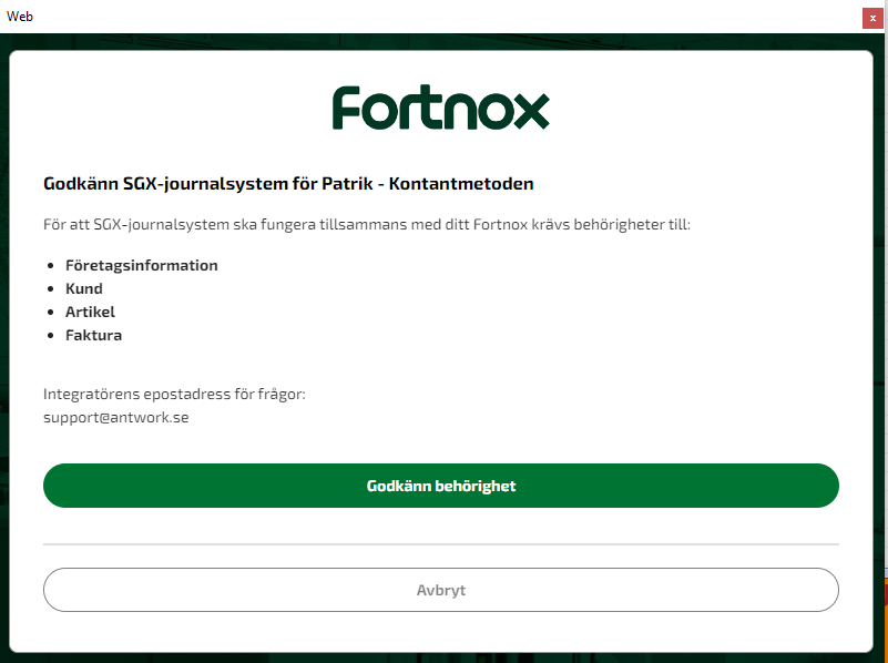 Kontakta Antwork support för att aktivera integration till Fortnox.