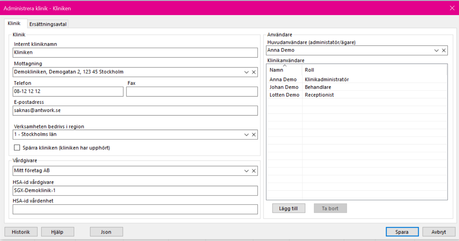 Internt kliniknamn används för att tydligare visa vilken klinik du befinner dig i om det finns flera kliniker. Används bara lokalt i SGX.