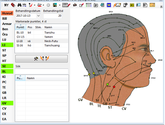 NY Skapar en ny akupunktur. Har du öppnat en tidigare behandling får du välja om du vill behålla punkterna.