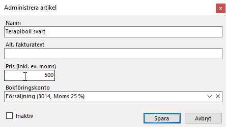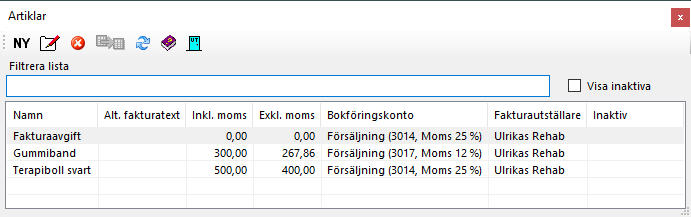 Notera att varje fakturautställare har egna artiklar, har du fler fakturautställare behöver artiklarna läggas in på varje fakturautställare.