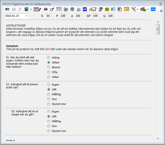 RAOS, frågeformulär för patienter med artrit och/eller besvär från höft/knä/fot