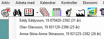 Tips! Högerklicka på ikonen Patientregister för att komma åt senast patienter.