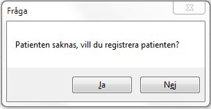 Om du söker på komplett personnummer och patienten saknas i systemet får Du en fråga: