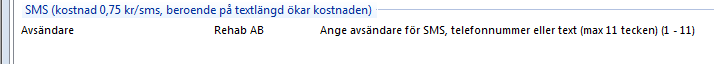 - Ange en text som t.ex Rehabfysen (max 11 tecken) kan mottagaren inte svara på SMS:et.