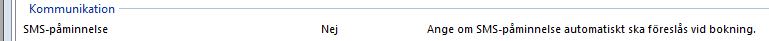 - SMS-påminnelse var inte valt på bokningen.