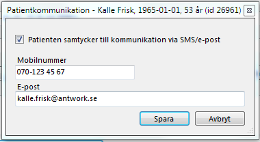 - Patienten har inte samtyckt till kommunikation via SMS/e-post.