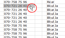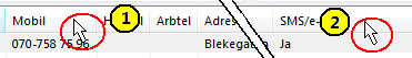 - Sortera på mobilnummer genom att klicka i kolumnhuvudet Mobil.