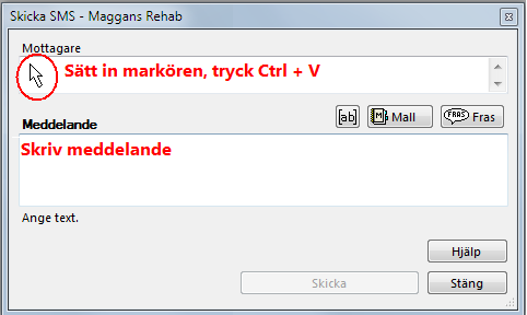 - Sätt markören i fältet Mottagare och klistra in mobilnummer genom att välja Ctrl + V.