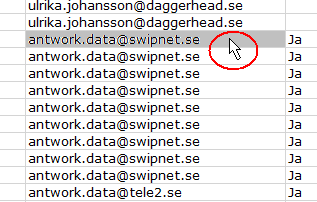 - Sortera på e-postadress genom att klicka i kolumnhuvudet för e-postadress.