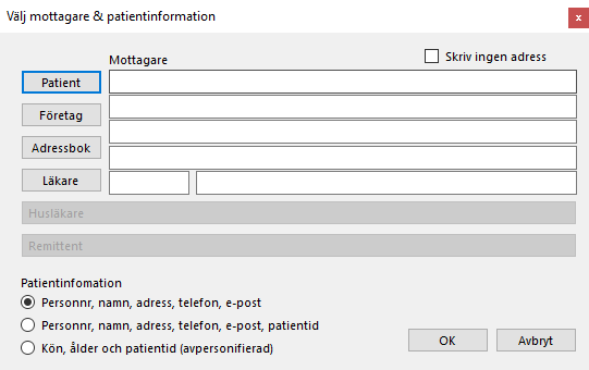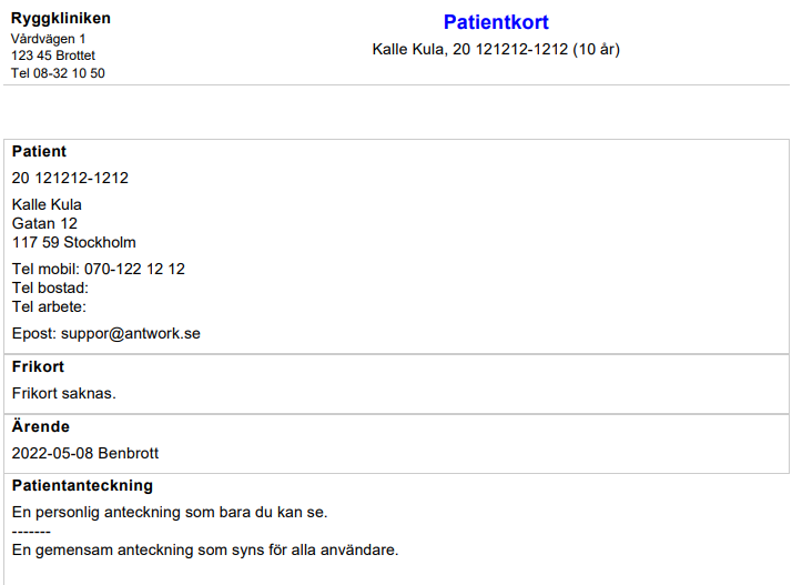 Under Fler patientrelaterade val | Skriv ut patientkort