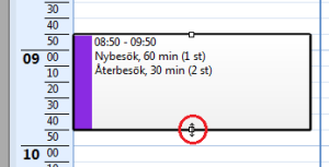 Genom att Dubbelklicka i rutan kan du göra ändringar i schemaläggningen (alt. högerklicka och välja "Redigera"). Du kan även flytta schemaläggningen genom att hålla ned Ctrl och dra den dit du vill ha den.
