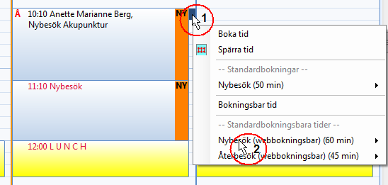 - Registrera återbudet, högerklicka bredvid återbudet, välj att lägga ut tiden i webbtidboken.