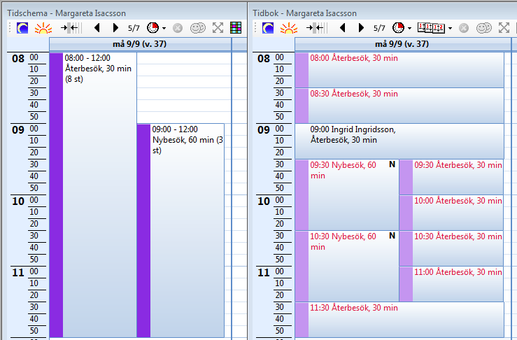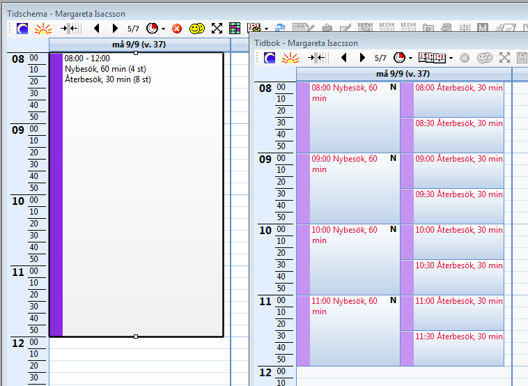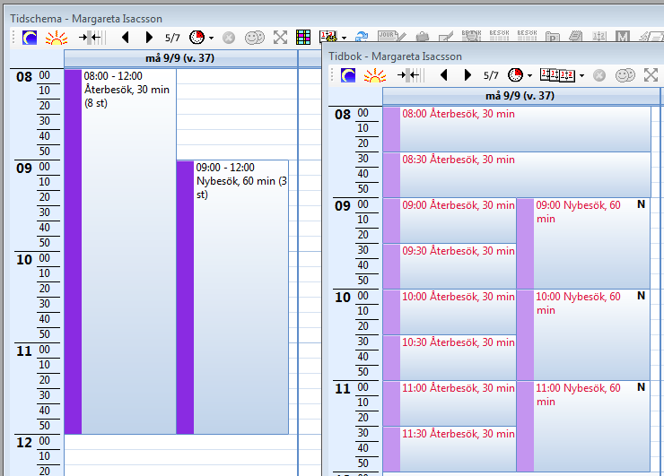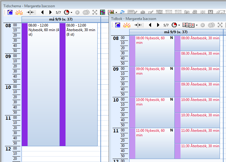 Skapa en ny schemaläggning med bara Återbesök. I tidboken blir det lika som den första: