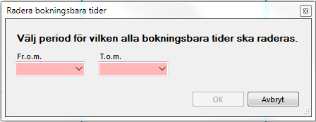 och välj "Radera bokningsbara tider". Du väljer vilken tidsperiod som skall raderas.