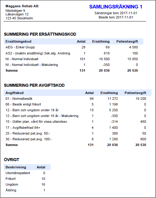 OBS! Samlingsräkning skapas av besök som skickats till regionen (lagts på fil) men inte finns med på en tidigare samlingsräkning.