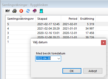 Det innebär att du inte kan skapa samlingsräkning för månaden innan besöken är inskickade (eller du skapat fil med besöken).