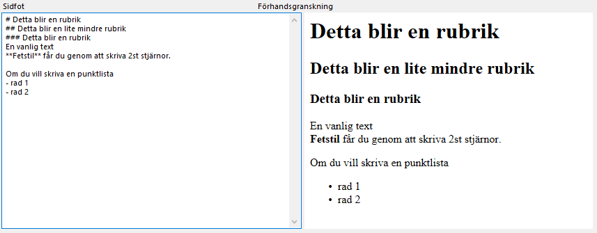 Det finns mycket skrivet på internet om hur text formateras, t.ex. här https://www.markdownguide.org/basic-syntax/