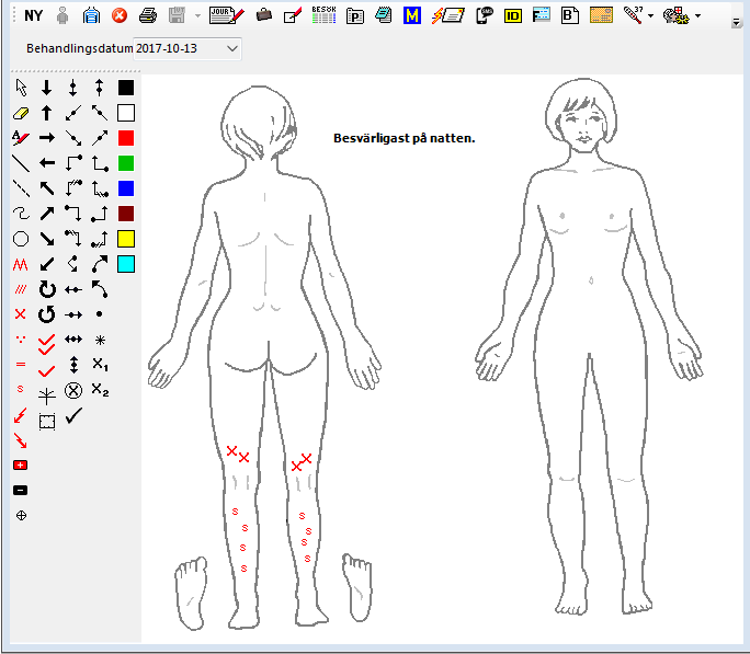 När du sparar smärtbilden skapas en klickbar länk i journalen.
