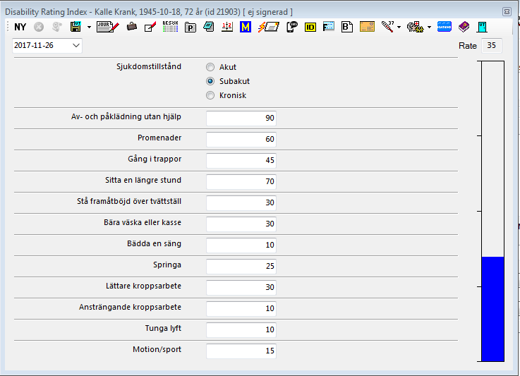 - Patienten skriver på skalan. "Med viss svårighet"; "Med svårighet"; "Med stor svårighet" etc.