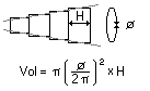 Volymen är inte absolut exakt utan beräknas på en "medelcylinder" mellan varje par mått, ex:
