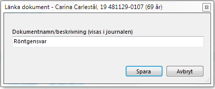 Du väljer fil att länka och sedan ger du dokumentet ett namn/rubrik som visas i journalen: