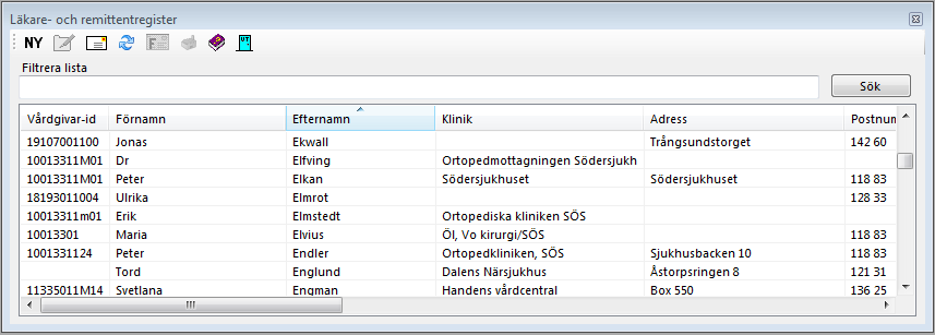Ett register där Du kan lägga in Dina vanligaste remittenter för att lätt kunna hitta dessa om de skall knytas till en patient, Du skickar remissvar, utgående remisser eller brev till remittenten.
