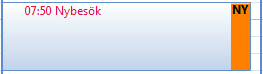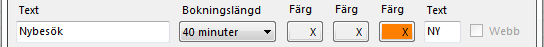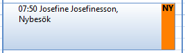 Du kan skriva en text "Nybesök", välja bokningslängd, välja färg i de tre fälten i bokningen samt ange ett märke "NY" i högerkolumnen.