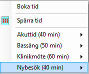 Om Du sedan högerklickar i en bokningsruta kan Du välja Nybesök för att reservera tiden för nybesök: