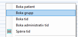 Högerklicka i tidboken och välj "Boka grupp".