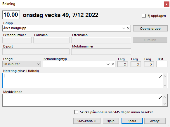 Alternativt dubbelklicka på den tid i tidboken du önskar boka in gruppen