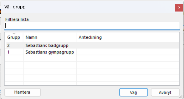 Välj grupp
