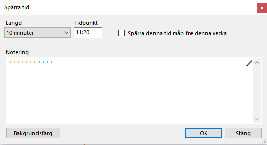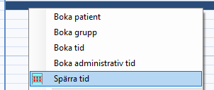 Du kan också "dra" över flera tider, högerklicka i markeringen och välj "Spärra tid".