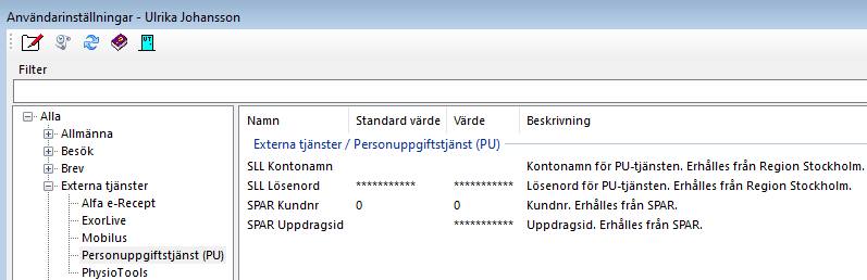 När du fått inloggningsuppgifterna för tjänsten behöver du registrera dem i SGX. Detta gör du under Inställningar | Användarinställningar | Externa tjänster.