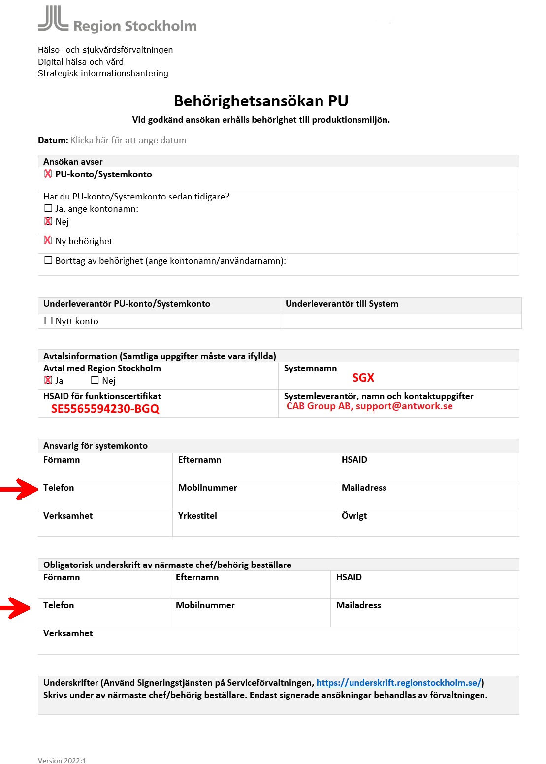 Det är viktigt att ange SGX och våra anslutningsuppgifter, ange sedan dina uppgifter vid pilarna.