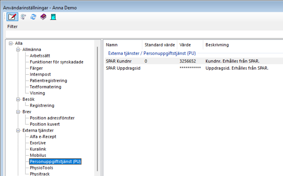 När du fått ditt kundnr och uppdrags-id från SPAR lägger du in det under dina Användarinställningar i SGX.