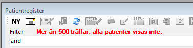 Om du söker för "brett", med ex. 'and' så kan det hända att SGX hittar för många patienter och uppläsningen av patienter tar för lång tid. Utöka filtreringen med exempelvis mellanslag och början på hens förnamn. Exempel 'and jo'.