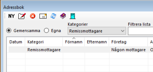 Du kan även knyta adresser till olika "Kategorier", ex. remissmottagare, leverantörer, kollegor eller vad Du vill.