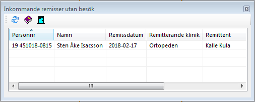 Under Kontroller, Remisser utan besök visas remisser vilka ännu inte registrerats några besök på
