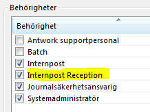 För att läsa receptionspost måste du ha den rättigheten under Arkiv, Systemadministration, Administrera användare, Behörigheter.