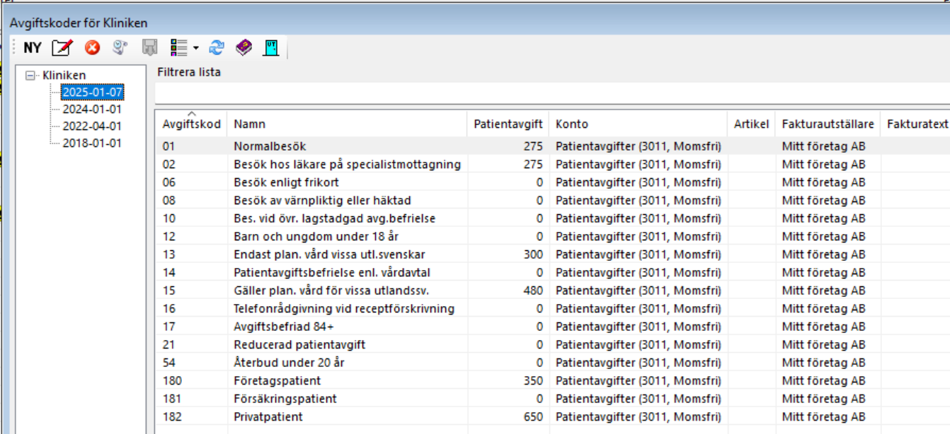 Under Inställningar | Avgiftskoder.