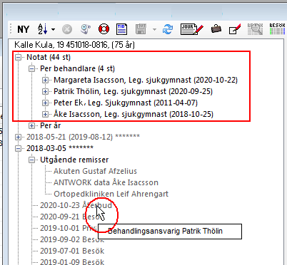 - Klicka på "Notat" och välj "Per behandlare"
