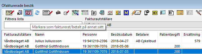 Markera patientavgift som fakturerad/betald på annat sätt