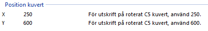Om placeringen av adresser vid utskrift inte stämmer med fönsterkuvertet kan Du justera placeringen här.