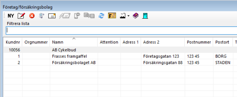 Här finns de företag du lagt in i systemet. Funktionen kan ävan nås via ikonen