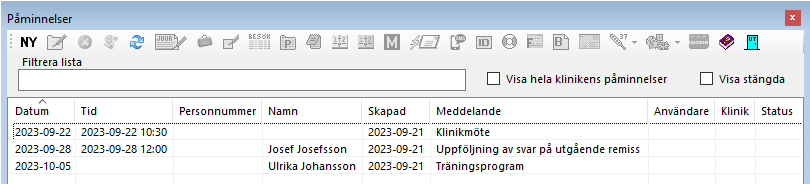 Du kan välja om du vill se hela klinikens påminnelser eller bara dina egna.