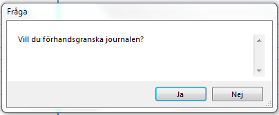Klicka på skapa fakturajournal eller skapa inbetalningsjournal och välj datum t.o.m. som journalen skall omfatta. Du får en fråga om du vill förhandsgranska journalen. Om du svarar Ja så kommer den upp på skärmen som en förhandsgranskning. Om den är OK så stäng den och skapa en skarp version som inte går att backa. Svarar du "Nej" här så skapas fakturajournalen slutgiltigt, utan möjlighet att förhandsgranska. | ![]() |