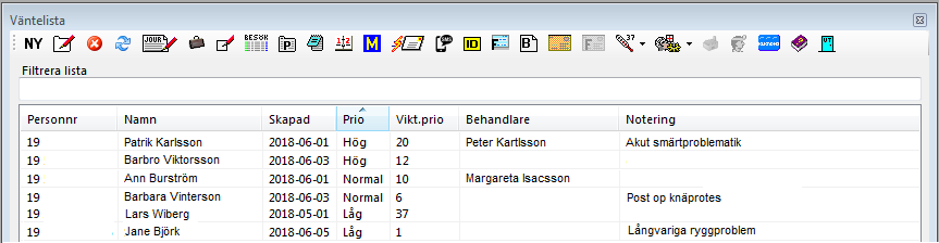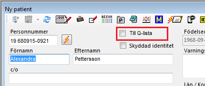 Det går även att lägga in en patient i väntelistan utan egentliga personuppgifter.