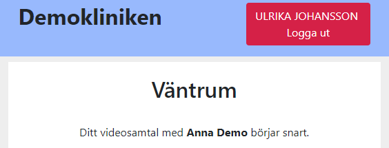 - Patienten kommer till Väntrum. Information om att mötet börjar snart visas.