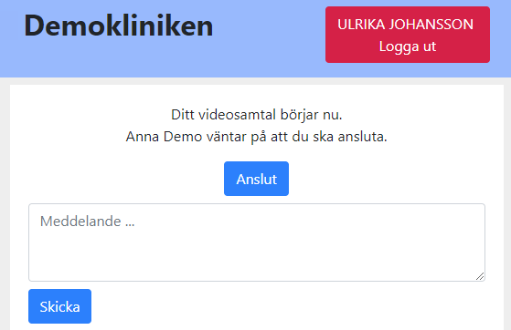 - Patienten startar videosamtal genom att klicka på länken i bokningsbekräftelsen eller i påminnelsen via SMS.